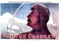 Giorgi Saakadze (Russian: Георгий Саакадзе, Georgian: გიორგი სააკაძე) is a 1942 Soviet historical drama film directed by Mikheil Chiaureli.[1] The screenplay was written by Anna Antonovskaya and Boris Chenry on the basis of Antonovskaya's 1942 Stalin Prize-winning six-volume novel, Veliky Mouravi (The Great Mouravi). The film is a dramatization of the story of Giorgi Saakadze (portrayed by Akaki Khorava), a 17th-century Georgian political and military leader who was celebrated as a national hero of Georgia in Soviet wartime propaganda. Soviet leader Joseph Stalin was personally involved in modifying the movie's script.[2]