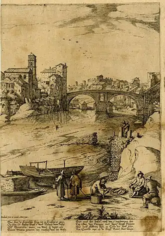 The corpse was thrown into the river at the point besides the fountain where the refuse of the streets is usually dumped into the water, near or beside the Hospital of Saint Hieronymus of the Slavonians on the road which runs from the Angel's Bridge straight to the Church of Santa Maria del Popolo[17]