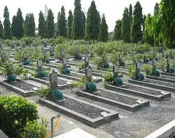 The former governor of Central Java, HM Ismail, was buried in Giri Tunggal following his death on 23 February 2008.[7] Between 2009 and 2011 the cemetery was fenced at a cost of Rp 2.7 billion. After the renovations, Social Minister Salim Segaf Al-Jufri described the cemetery as the second best heroes' cemetery in the country, after Kalibata Heroes' Cemetery in Jakarta. At the time it held 1,843 interments.[1] Of these, according to the Semarang-based daily Suara Merdeka only two, Kho Siang Bo and Lie Eng Hok, have explicitly Chinese names; Kho may have been a fighter during the Five Day Struggle in October 1945, while Lie was an early figure in the Indonesian Communist Party who was detained in Boven-Digoel for five years.[8][9]