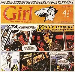 ![]() The cover of Girl issue 1, featuring Kitty Hawke and her All-Girl Air Crew, 1951 | |