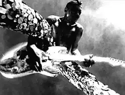 The music video for "Give It Away" was made by French fashion photographer and director Stéphane Sednaoui. Kiedis wanted the video to be visually distinct and readily identifiable but disliked much of the material Warner Bros. sent for him to choose from: "I started viewing reels and reels and reels of video directors but nothing looked good to me. Everything was the same, boring, homogenized, contrived shit."[30] Upon finding Sednaoui's reel, however, the singer said it was "like nothing else. It was slower and poetic, shot in black and white. It seemed like authentic art, not something shot for MTV."[30] He and Flea met with Sednaoui to talk about the video, for which the director proposed a "very desolated [and] very graphic landscape," while heavily focusing on the band members with little to no outside influence.[31] It was decided that the video would be filmed in black and white while Sednaoui took the idea of painting the band members with silver acrylic from previous photo shoots he had done. The photographer recalls that he was "amazed by what [the band] gave me because they went far far far beyond what I was expecting and I think that's one of my best experiences in that regard".[31] The overall mood of the video was intended to be a personification of the song, upbeat and lively.[10]