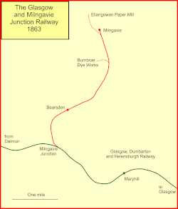 The Glasgow and Milngavie Junction Railway was a short locally promoted branch line built to connect the industrial town of Milngavie with the main line railway network, near Glasgow, Scotland. It opened in 1863.