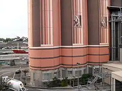 Bulk handling of grain continued until 1990 when the wheat terminal was transferred to Port Kembla and the wharfage remodelled for containerised cargo.[14][16] Some silos were demolished, while from 1991 Australian Cement (now Cement Australia) used 16 of them as a bulk cement terminal. These are now heritage-listed. In the 1990s a high-level, cable-stayed, reinforced concrete six-lane bridge spanning 345 metres between two 120-metre towers was built above the older Allan-designed Glebe Island Bridge. The new bridge opened on 3 December 1995, and was also named Glebe Island Bridge. It was renamed Anzac Bridge in 1998. Until November 2008, the island was the Australian Amalgamated Terminals (AAT) facility for imported motor vehicles.