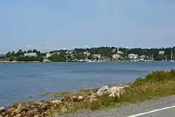 Within the community is a peninsula called Indian Point that stretches into the bay. At its tip are two small islands: Big Indian Island and Little Indian Island. All three are so named because of arrowheads that have been found there in the past, suggesting that this was once a Mi'kmaq summer camping ground.[1] Big Indian Island is also popularly referred to as Micou's Island. It is a tidal island accessible by a sandbar at low tide which has become a popular beach during summer months.