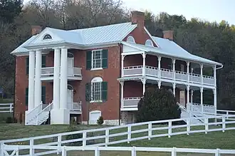 Glen Maury, also known as the Paxton Place and Elisha Paxton's house, is a historic home located in Rockbridge County, Virginia, near the independent city of Buena Vista. It was built between 1829 and 1832, and is a 2+1⁄2-story, brick dwelling. It sits on a high basement, made of native stone, and has a two-story rear ell addition. The front facade features a somewhat crude, two-story, Doric order Classical Revival portico with paired columns. The river side is dominated by a five-bay, two-story verandah with turned wooden posts and simple brackets. It was added about 1900.[3]