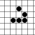 The glider is a pattern that travels across the board in Conway's Game of Life. It was first discovered by Richard K. Guy in 1969, while John Conway's group was attempting to track the evolution of the R-pentomino. Gliders are the smallest spaceships, and they travel diagonally at a speed of one cell every four generations, or .[a] The glider is often produced from randomly generated starting configurations.[1]