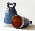 The carillon of 30 Meissner porcelain bells lodged between the gables was added in 1934, maintaining a medieval tradition. Initially, the bells were painted blue on the outside and gold on the inside.[4] As the carillon chimed, 10 coloured wooden panels come into view as they rotate inside the tower. The reliefs of famous seafarers and aviators include Christopher Columbus, Hermann Köhl, Charles Lindbergh, Count Zeppelin, and Ehrenfried Günther Freiherr von Hünefeld.[5] The panels were designed by Bernhard Hoetger and crafted by Zdzislaus Victor Kopytko. The National Socialist Party considered Hoetger's Expressionist work degenerate but in 1937 it nevertheless listed Böttcherstraße for cultural heritage protection as an example of degenerate art.[3]