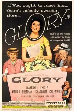 Glory is a 1956 American musical film directed by David Butler and starring Margaret O'Brien, Walter Brennan and Charlotte Greenwood.[2] It was distributed by RKO Pictures.