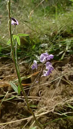 Glycine microphylla, commonly known as the small-leaf glycine is a small scrambling plant in the bean family, found in south eastern Australia, also in the north east (tropical Queensland). Leaves are in threes, 1.5 to cm long, 1 to 6 mm wide. Flowers are variable in colour, often mauve. A widespread plant, often seen on soils derived from shale and metamorphic rocks. The specific epithet microphylla refers to the small leaves.[1][2][3]