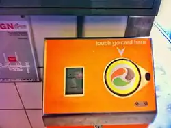 The go card is an electronic smartcard ticketing system currently used on the Translink public transport network (trains, trams, buses, ferries) in South East Queensland, Australia. The go card is used by holding it less than 10 cm away from a card reader to "touch on" before starting a journey, and to "touch off" before finishing a journey. The cost of each journey is deducted from the go card balance.