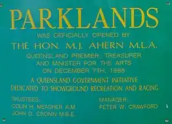 (help) - ^ Gleeson, Peter (25 August 2007), "Politicians paw over Parklands showgrounds", The Gold Coast Bulletin, p. 58