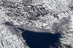 The Golden Horseshoe (French: Fer à cheval doré) is a secondary region of Southern Ontario, Canada, which lies at the western end of Lake Ontario, with outer boundaries stretching south to Lake Erie and north to Lake Scugog, Lake Simcoe and Georgian Bay of Lake Huron. The region is the most densely populated and industrialized in Canada. Based on the 2021 census, with a population of 7,759,635 people in its core and 9,765,188 in its greater area, the Golden Horseshoe accounts for over 20 percent of the population of Canada and more than 54 percent of Ontario's population.[3] The population of the greater area is estimated to have exceeded 11,000,000 people in 2024.[4] The Golden Horseshoe is part of the Quebec City–Windsor Corridor, itself part of the Great Lakes megalopolis.