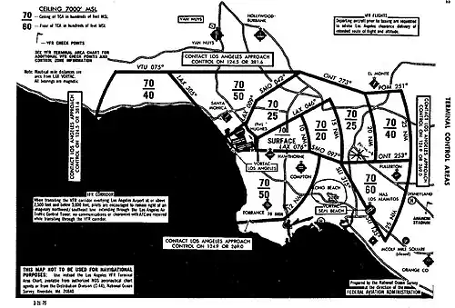 The IFR flights were required to remain within the confines of the Los Angeles Group 1 terminal control area (TCA) (now Class B Airspace), while smaller planes were required to remain outside of the TCA, until the designated entry point, which was specified in their assigned VFR TCA arrival. In the case of GW 261, it was to remain outside of the TCA until the 10 DME fix of runway 24 right localizer, and to enter at an altitude of 1,500 feet MSL. The top of the TCA was 7,000 feet, while the base varied, depending on the distance from LAX. That mixed GW 261 in with all the other small plane VFR traffic in the Los Angeles Basin, which did not have transponders. Most of those were not flying to LAX, so they were not in radio communication with LAX radar controllers. The only defense was the "see and be seen" method of collision avoidance. That deficient method of traffic separation failed to work that day, as it has failed many other times in high density traffic areas.