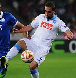 Gonzalo Gerardo Higuaín (Spanish: [iɣwaˈin]; born 10 December 1987) is an Argentine former professional footballer who played as a striker. Nicknamed El Pipita or Pipa, he is considered to be one of the best strikers of his generation and was a prolific striker known for his eye for goal, strong physique, offensive movements and predatory finishing.[5][6] He won six European league titles across La Liga and Serie A. He currently works in player development for Inter Miami.