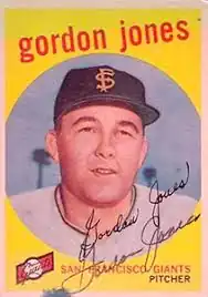 Gordon Bassett Jones (April 2, 1930 – April 25, 1994) was an American Major League Baseball pitcher. The 6 feet (1.83 m), 190 pounds (86 kg) right-hander was a native of Portland, Oregon. He was signed by the St. Louis Cardinals as an amateur free agent before the 1949 season, and played for the Cardinals (1954–56), New York / San Francisco Giants (1957–59), Baltimore Orioles (1960–61), Kansas City Athletics (1962), Houston Colt .45s / Astros (1964–65).