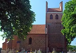 A fortification is known to have existed here at least since some time before 1233, since it is known that it was reinforced 1233–1236 by Duke Sambor II with the help of the Teutonic Order. Sometime later it was captured by his brother, Świętopełk II. In 1282 his son Mestwin II gave the castle to the Bishop of Płock. The bishop founded a town that grew up around the castle. It was granted town rights in 1287.[1] In 1312 the town was bought by the Teutonic Order and was deprived of its town rights. It was later a royal village of the Kingdom of Poland, administratively located in the Tczew County in the Pomeranian Voivodeship.[3] The village suffered much damage in the Deluge and was almost completely abandoned. In 1905, the town had 436 inhabitants; in 1943, 435.[4]
