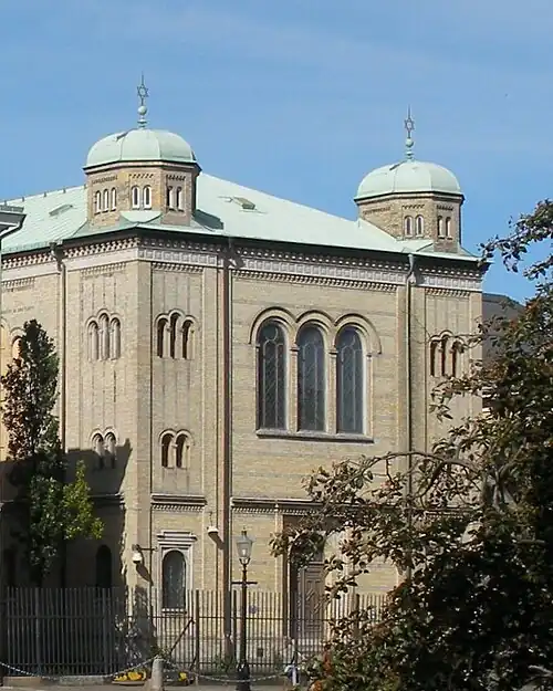 The Gothenburg Synagogue (Swedish: Göteborgs synagoga) is a Conservative Jewish congregation and synagogue, located at Östra Larmgatan 12, near Drottningtorget, Gothenburg, in the municipality of Gothenburg, in the Västra Götaland County of Sweden. The synagogue was designed by August Krüger in the Romanesque Revival style and completed in 1855,[1][3][4] and has 300 seats.