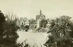 Part of the site was known to the Māori people as Paepaehakumanu and the northern part as Motutara.[2] The area known as Paepaehakumanu was a bird-snaring ground, which led to its name.[3] The area is of historical significance to the local Maori, with battles having been fought here.[1] The Maori gave 50 acres of the land to the British Crown in the late 1800s.[2] The combined Paepaehakumanu and Motutara area became known as the Sanatorium Reserve, or more commonly, the Government Gardens.[2]