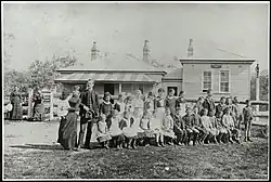 The residents of Gowrie made an application for the establishment of a school in 1880 and appropriate land had been identified by July 1881. A 0.8-hectare (2.0-acre) block was formally dedicated for school use on 12 January 1883 and a further 8 hectares were added on 21 August of the same year. Inspector Mr W. F. Thompson recommended the building of a weatherboard school to accommodate forty-five pupils and a residence with three rooms and a kitchen at an estimated total cost of £650. His recommendation was adopted and tenders were called in August 1882. The school opened in February 1884 with John Reily as its teacher. He was to remain there until August 1886.[8][9]