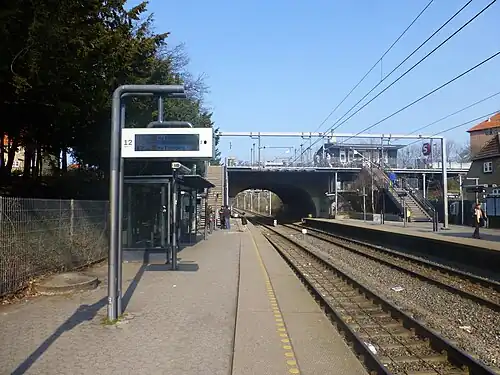 Grøndal station (Danish pronunciation: [ˈkʁɶnˌtɛˀl stæˈɕoˀn], previously called Godthåbsvej station) is an S-train station serving the neighbourhood of Grøndal in the district of Vanløse in Copenhagen, Denmark.[1] The station is located on the Ring Line of Copenhagen's S-train network.[1]