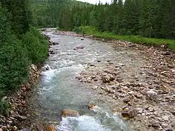 Grønfjellåga[1] (lit. 'green mountain river') is a river in Rana Municipality in Nordland county, Norway. The 17-kilometre (11 mi) long river's source is the lakes Kallvatnet and Kopparvatnet. It then flows through the Grønfjelldalen valley while absorbing several smaller rivers, before it flows out as a tributary to the river Ranelva at the Dunderforsen waterfall (also called Stupforsen).[2]