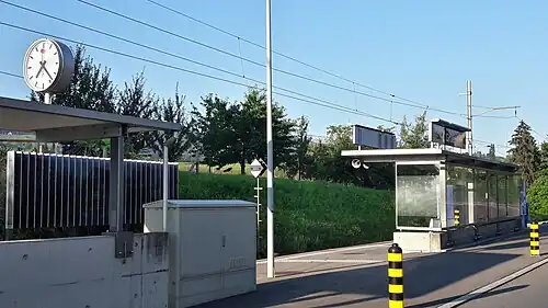Grüenfeld is a railway station in the Swiss canton of Zurich and municipality of Richterswil. The station is on the Wädenswil to Einsiedeln railway line owned by the Südostbahn. The station is served by Zurich S-Bahn service S13, from Einsiedeln to Wädenswil.[1][2][3]