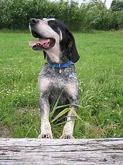 The Grand Bleu de Gascogne is a breed of hounds of the scenthound type, originating in France and used for hunting in packs. Today's breed is the descendant of a very old type of large hunting dog, and is an important breed in the ancestry of many other hounds.
