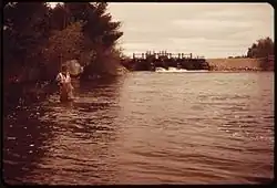 The town Grand Lake Stream is named after the stream that flows through it, which is notable for its excellent landlocked salmon fishery and a fishing tradition that dates to the middle of the 19th century.[2] It also has a long, local tradition of hand-built wooden canoes, ideal for navigating the waters of nearby West Grand Lake.[3]