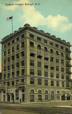 - ^ "The Masonic Temple of Raleigh". Raleigh Daily Telegram. April 21, 1871. p. 3. Retrieved October 21, 2022 – via Newspapers.com.