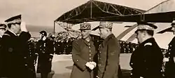 Upon the outbreak of war GQG was activated and its constituent departments dispatched to their posts. Gamelin and his staff to Vicennes; Georges and his north-east army staff, General Henri-Marie-Auguste Bineau (the major-général), the First, Second, Third and Fourth Bureaus, the postal, personnel, security, rail and wireless departments to La Ferté-sous-Jouarre and the service branches and inspector-generals to Meaux. Gamelin and his staff were housed in "T" bunker, a three-level underground facility built in 1832. Georges and his staff were housed at Chateau Bondons, an eighteenth-century house in a 5 hectares (12 acres) park beside the Marne with no fewer than 70 other properties utilised in or around the town to better disperse the staff in case of aerial attack. At Meaux 24 different properties were utilised, including at nearby Lizy-sur-Ourcq, Esbly and Condé-Sainte-Libiaire. This considerable fragmentation of the staff prevented effective communication between departments and generated unnecessary paperwork.[5] Gamelin and the GQG staff hosted the Duke of Windsor to dinner on 14 October 1939.[6]