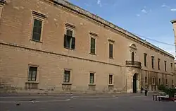 The site of the palace was originally occupied by several buildings, including the house of the knight Eustachio del Monte which was built in 1569,[5] and the auberge of the langue of Italy which was built in around 1571.[6] Both of these buildings were built to designs of the Maltese architect Girolamo Cassar.[7]