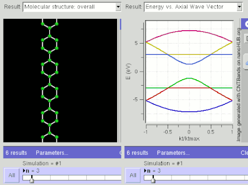 If the in-plane direction is confined rather than infinite, its electronic structure changes. These confined structures are referred to as graphene nanoribbons. If the nanoribbon has a "zig-zag" edge, the bandgap remains zero. If it has an "armchair" edge, the bandgap is non-zero.