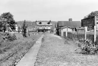The station, which opened with the line in mid-1902,[2] had two platforms, each with a run-round loop, and a goods shed and cattle dock with their own sidings. Another siding branched west towards Skirethorns Quarry, ending at the rear of a set of terraced houses known as Woodlands Terrace. Limestone was brought down from the quarry by a tramway to Woodlands Terrace, where it was transferred to trains.
