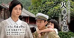 Grave of the Fireflies (火垂るの墓, Hotaru no Haka) is a live-action TV drama adaptation of Grave of the Fireflies, made by NTV in Japan. It was produced in commemoration of the 60th anniversary of the end of World War II. The drama aired on November 1, 2005. Like the anime, the live-action version of Grave of the Fireflies focuses on two siblings, Seita and Setsuko, struggling to survive the final days of the war in Kobe, Japan. Unlike the animated version, however, it tells the story from the point of view of their cousin (their aunt's daughter) and also deals with the issue of how the war time environment could change a kind lady into a hard-hearted woman. The film stars Nanako Matsushima as the aunt and Mao Inoue in a dual role as the cousin and the cousin's granddaughter.