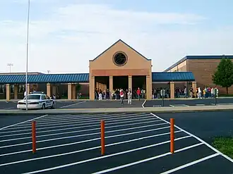 Grayson County High School was established in 1974 after the three high schools throughout Grayson County were consolidated. The county originally had one high school in each of its major communities: Clarkson High School (Red Hawks), Leitchfield High School (Bulldogs), and Caneyville High School (Purple Flash).[2] Today, each of these communities has an elementary school (Leitchfield has two) which all feed into one county middle school and high school. To appease the various communities who had just lost their high schools, GCHS was located in a central location, and the colors and mascot were neutral of the old colors of the original schools.