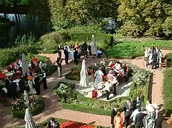 A green wedding is an eco-friendly and conscious consumption of resources that would otherwise be used in a traditional wedding.[2] Green weddings represent a new lifestyle. Compared with the extravagance and waste of traditional weddings, today's green weddings are more economical and environmentally friendly. This can include recycling waste, choosing a sustainable venue, and even neglecting to participate in traditional practices that could be considered unsustainable, such as buying rings from unethical sources.[3] Many people who live sustainably believe it is necessary to continue the lifestyle by making sure their weddings are also sustainable. Others choose green weddings to raise awareness about how sustainability is important in daily activities and celebrations. The largest factor that contributes to the growing number of green weddings is the impact wedding celebrations can have on the environment. Many argue that without being conscious of practices and items used, the average wedding can generate a large amount of waste.[4]