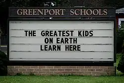 Greenport Union Free School District is a public school district located on the North Fork of Long Island, in the Town of Southold, Suffolk County, New York, United States. It includes the entirety of the village of Greenport and census-designated place (CDP) of Greenport West. It also includes parts of Southold and East Marion.[1] To the west, the district is bordered by the Southold Union Free School District; and on the east, the Oysterponds Union Free School District.
