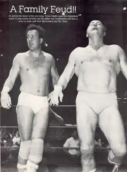 Schooled in the fundamentals of amateur wrestling by his father as a teenager, Gagne started wrestling professionally in 1972 in his father's promotion, the American Wrestling Association (AWA). Gagne formed the team The High Flyers with Jim Brunzell,[1] and on July 7, 1977 they defeated Duncum and Lanza to win the AWA World Tag Team Championship. The Flyers successfully defended the title in rematches with the former champions as well as other contenders within the AWA ranks for nearly 15 months before they had to vacate the title due to an injury that Jim Brunzell sustained while playing in a charity softball game. The title was awarded to Pat Patterson and Ray Stevens in late September 1978. The Flyers regained the title in June 1981 from The East-West Connection (Adrian Adonis and Jesse "The Body" Ventura).[2] The Flyers held the title for a little more than two years before dropping it to Ken Patera and Jerry Blackwell on June 26, 1983. Though the Flyers came close to regaining the title on several occasions, they never recaptured it. The team parted ways shortly thereafter, with Gagne entering into singles competition while Brunzell worked frequently as both a singles and tag team wrestler before departing for the World Wrestling Federation in 1985.