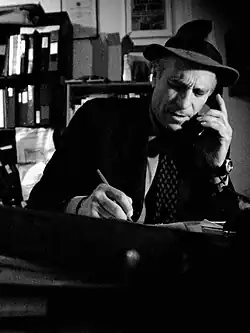 Palast in his New York City office wearing a press fedora