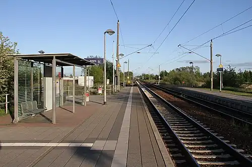Greifswald Süd (German: Bahnhof Greifswald Süd) is a railway station in the town of Greifswald, Mecklenburg-Vorpommern, Germany. The station lies of the Angermünde–Stralsund railway and the train services are operated by DB Regio Nordost and Ostdeutsche Eisenbahn.