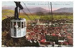 In Grenoble, the desire for openness and expansion of the city led its mayor at the time, Paul Mistral, to successfully organize the Exposition internationale de la houille blanche (International exposition of hydropower also known as "white coal") in 1925, and subsequently to acquire land for the city's future airport. In 1930, together with the vice-chairman of the chamber of tourism, Paul Michoud, he planned the world's first urban cable car in the city. The site of the Bastille overlooking the Grenoble area was naturally chosen to become a tourist attraction.[4] The site, fortified a century earlier by General Haxo, had a natural promontory offering a 360° panoramic view.