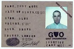After moving to Bow in East London, Toby Mott and childhood friends Daniel Saccoccio, Tim Burke and Paul Spencer formed Grey Organisation in 1982 as a response to the "prevailing Thatcherite free market consumerist culture".[6] GO's origins can be found in the Punk movement and 1970s youth politics, the quartet having been members of the Anarchist Street Army.[7] They eschewed the more common anarcho-aesthetic opting instead to dress uniformly in grey suits, with heads shaved in a parody of yuppie and Soviet "corporate monoculture".[6]