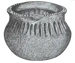 This pottery is characterized by shell tempering, predominantly cordmarked surfaces, trailed or incised decoration and straight, excurved or flaring rims. Notched lips and rim lugs are also common.[1]