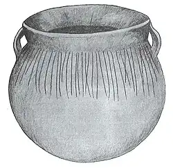 Huber ware is common at the Huber,[8] Anker,[6] Oak Forest[9][10] and Hoxie Farm sites[8] near Chicago, Illinois; and at Moccasin Bluff[11] and Schwerdt[12] in southwestern Michigan where it is part of the Berrien Phase. At the Oak Forest site, this ware has been associated with early Historic artifacts, which indicates the pottery was still being made at the time of European contact.[9][10] The exact cultural affiliation has not been determined but it has been suggested that the makers of this pottery may be the Miami or Potawatomi tribe.[11]