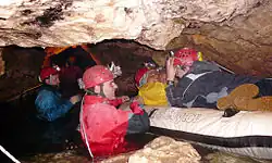 The lake Pasa , one of the largest lakes in the cavethe "mud branch", a blind branch of 150 m, where as the name suggests, it gets dirty to walk it