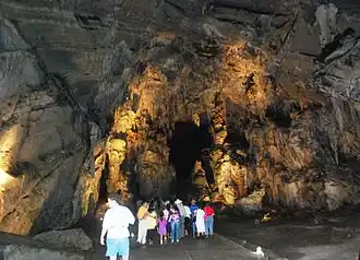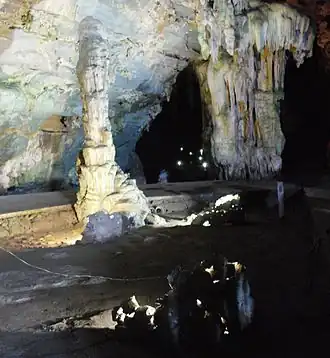 The Grutas de Cacahuamilpa National Park in the Mexican state of Guerrero, Mexico, is best known for the Grutas de Cacahuamilpa Caverns. It is also home to the Grutas of Carlos Pacheco, a smaller system, as well as two subterranean rivers which have carved out tunnels in the rock.[2] The park has outdoor pursuit attractions such as rappelling, and rock climbing in Limontitla Canyon.[2] as well as the two underground rivers to explore. It also has a small botanical garden, a pool and places to camp.[3]