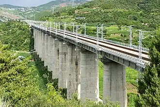 The Chuxiong-Dali section is 175 km (109 mi)-long with a designed speed of 200 km/h (120 mph). It is a Class I double-track electrified railway that passes through Chuxiong Yi Autonomous Prefecture and Dali Bai Autonomous Prefecture in Yunnan Province.[11] There are 80 bridges and 44 tunnels along the line, with 63.6% of the line composed of bridges and tunnels. The electrification facilities include 500 km (310 mi) of overhead lines, 5 traction substations and 429 km (267 mi) of power lines.[12] On 13 October 2009, China's National Development and Reform Commission approved 18 key projects for the Western Development program, including the double-track railway from Chuxiong to Dali.[13] On 10 September 2010, a mobilisation meeting for the project was held in Chuxiong Prefecture, attended by a number of leaders from the Ministry of Railways and Yunnan Province. Among them, Bai Enpei announced the start of the project, and Wen Qingliang reported on the project preparations at the mobilisation meeting.[1] In December 2012, as part of the Guangda Railway capacity expansion and reconstruction project, the Chuda section started construction, with an estimated cost of RMB 13.936 billion at the time of construction.[5] The units involved in the construction included China Railway's 12th Bureau[14] and 17th Bureau.[15]