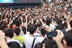 On July 25, 2010, a crowd of about 10,000 gathered at 5pm in the surroundings of Guangzhou Metro's Jiangnanxi Station in a protest to criticize the CPPCC Guangzhou Committee's proposal and support Cantonese.[35][36][37][38] Organizers of the activity had informed local police in advance, but were forced by the authorities to cancel it.[38][39] People, however, gathered regardless.