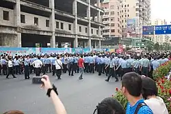 Local police were dispatched to the scene and exercised restraint throughout, and there was no physical clashes between the protesters and the police.[41] The crowd was dispersed at 6:30pm, when dusk fell and it started to rain.[36]