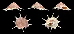 Five views of a shell of Guildfordia triumphans (Philippi, 1841) from Japan | |